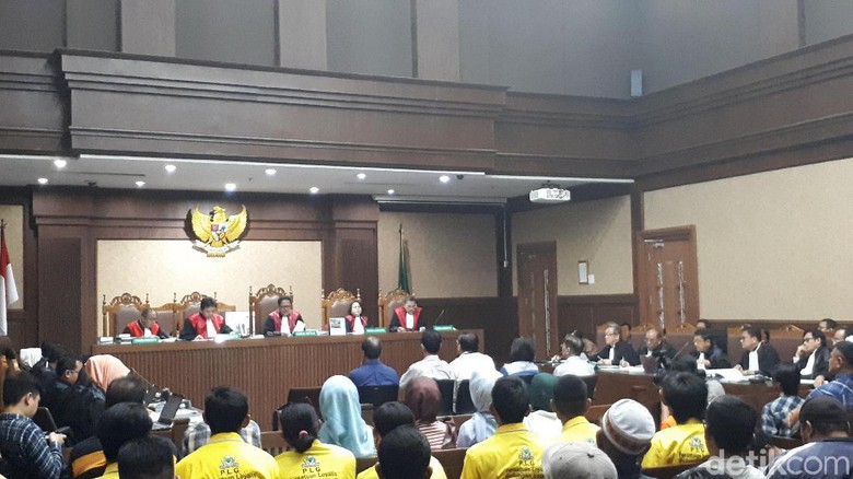 Hakim menilai jawaban Deni tidak sesuai. Hakim pun mengulangi pertanyaannya.