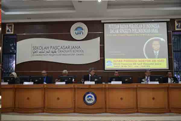 Hidayatullah Jakarta setelah dengan Sangat Memuaskan berhasil mempertahankan disertasinya pada Ujian Promosi Doktor, Jumat (26/6/2017).